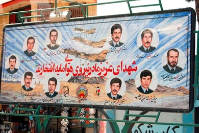 A picture of an Iran-Iraq war martyr is displayed in cemetery in Tehran (JPG)